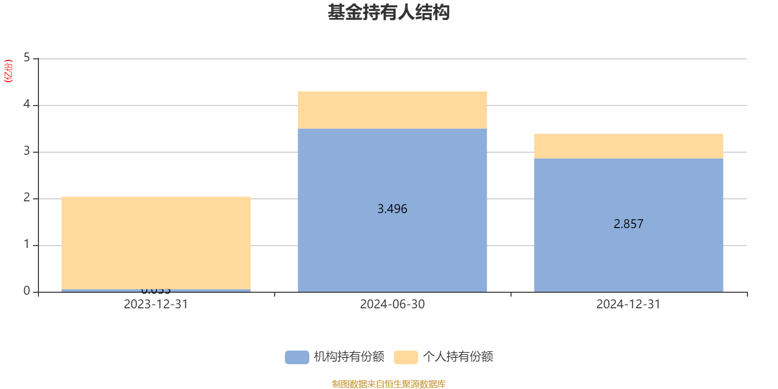 截至2024年12月31日,基金持有人共计1427户,合计持有3.38亿份。其中管理人员工持有32.25万份,占比0.10%,机构持有份额占比84.43%,个人投资者占比15.57%。