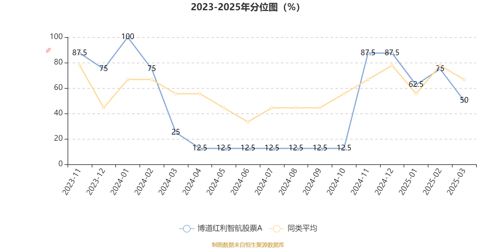 通过所选区间该基金净值增长率分位图,可以观察该基金与同类基金业绩比较情况。图为坐标原点到区间内某时点的净值增长率在同类基金中的分位数。